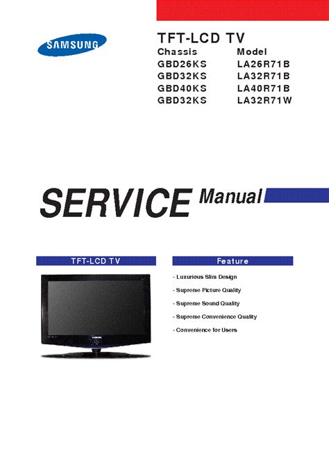 At present you are looking with regard to an Samsung La40r71b Service Manual Repair Guide example that we provide here in some type of document formats like as PDF, Doc, Power Point, as well as images that will make it easier for you to create an Samsung La40r71b Service Manual Repair Guide yourself. For a better look, you are able to open a few examples below. All the good examples about Samsung La40r71b Service Manual Repair Guide on this web site, we get from many sources so you can create a better document of your own.